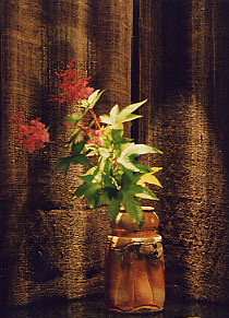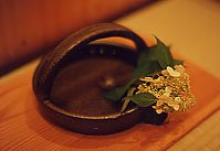 その焼き物に、山里の花々をあしらって、